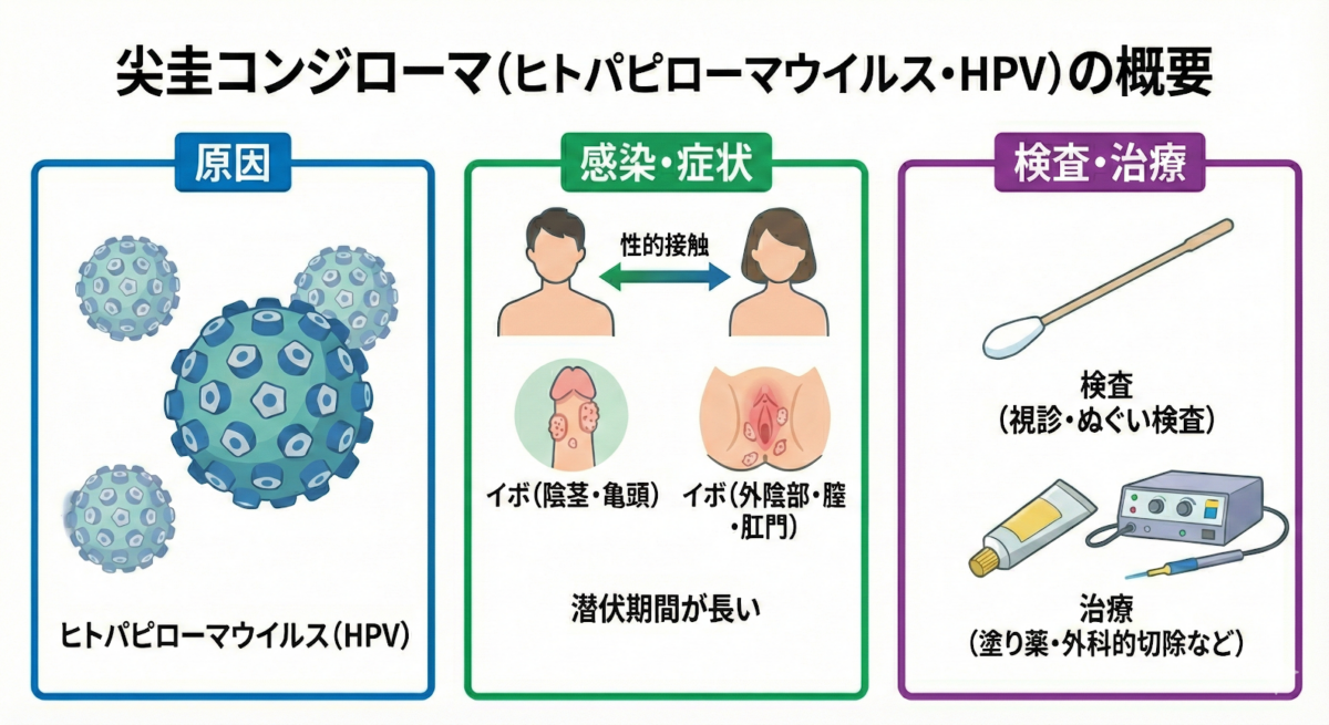 尖形コンジローマは、ヒトパピローマウイルス(HPV)に感染することで起こる性感染症の一つです。